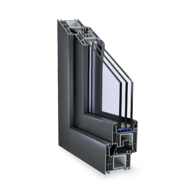 - 主型材高壁厚大斷面設(shè)計(jì),多腔室結(jié)構(gòu),可視面壁厚≥2.8mm,三道柔性密封設(shè)計(jì)采用一體膠環(huán)硫化成型工藝,絕佳的保溫隔熱性能。