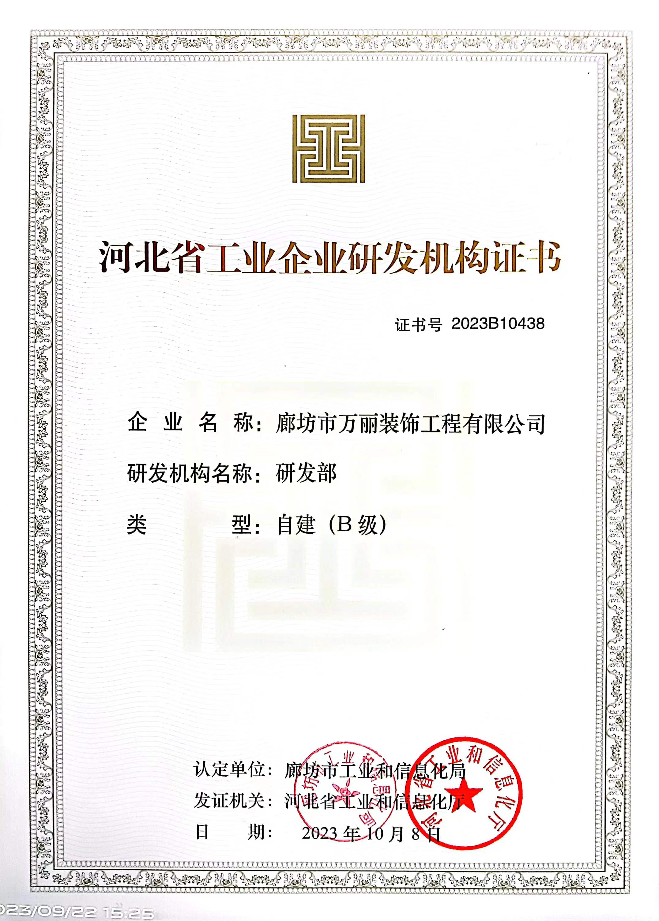 河北省工業(yè)企業(yè)研發(fā)機構證書
